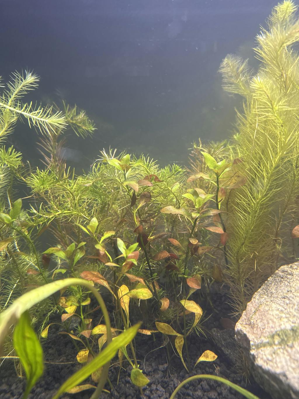 This would make a great contrast with some larger leaf plants in the background. Look at ALL of the photos of this plant. It's leaves are sweet but hard to photograph. (Out of water shots don't do it justice.)