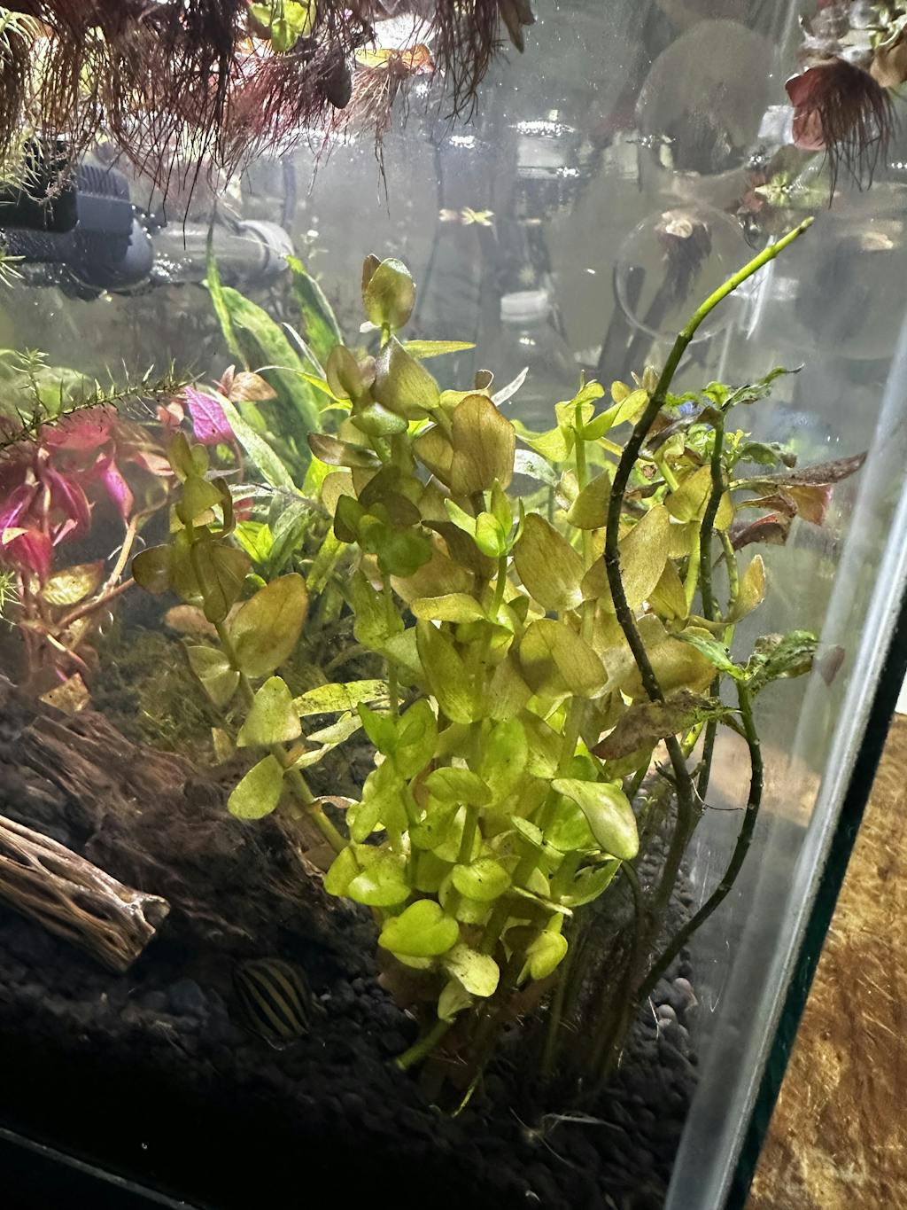 Bacopa caroliniana "Yellow Flame" Want a hardy stem plant that will give you a nice contrast to your background, without all of the work of faster stem plants that need trimmed all of the time? Say hello to Bacopa!