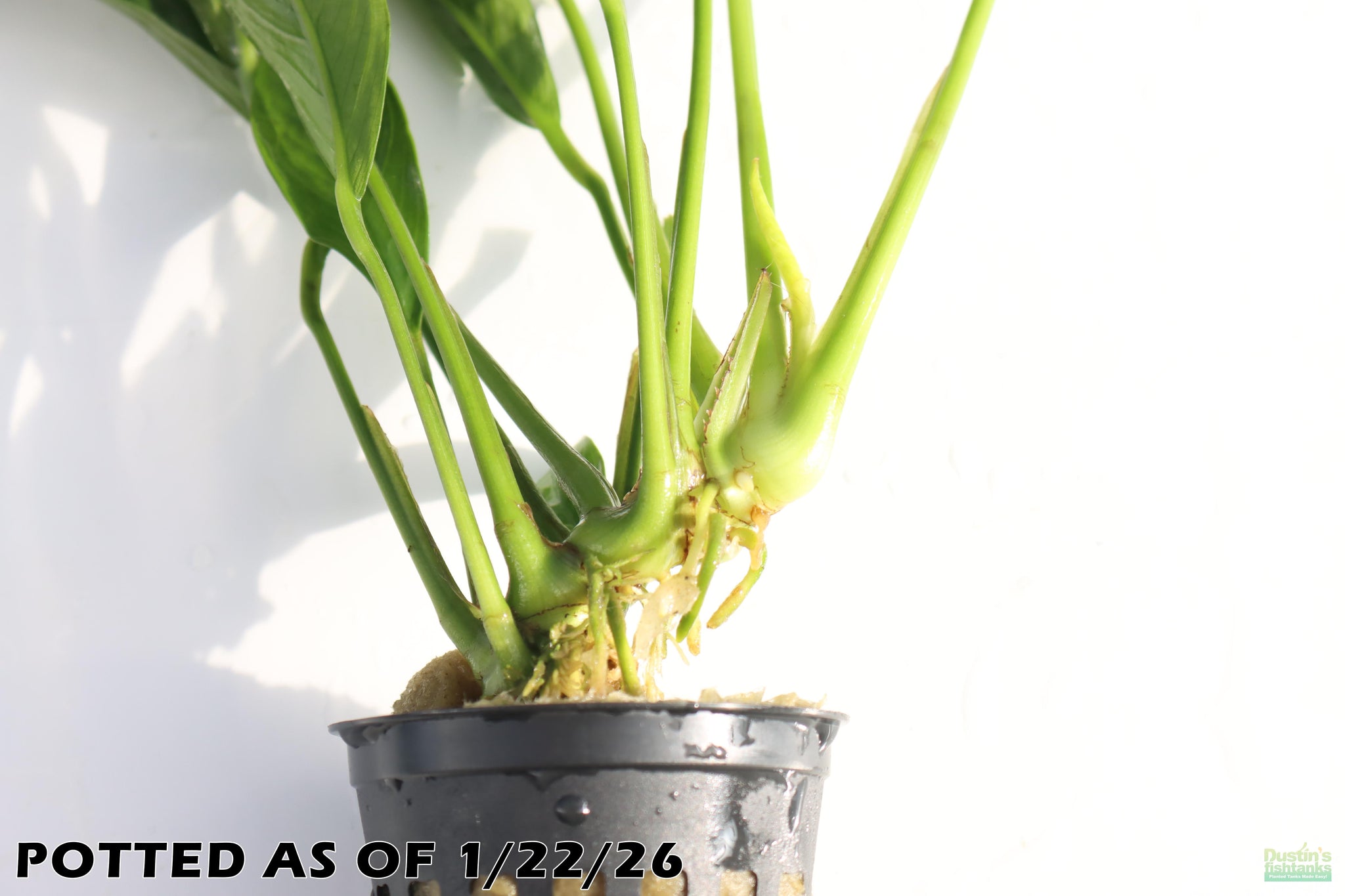 Want something FREE to Tie it down to your rocks or driftwood? Put a note in the comments on your order, "Hey Dustin- Throw me some of that thin black wire you have for this anubias." We will do our best to get it in there ;) If you like this one you'll like the look of this one too: http://dustinsfishtanks.com/aquarium-product/anubias-gigantia/ Or get full African Combo here: http://dustinsfishtanks.com/aquarium-product/africa-combo