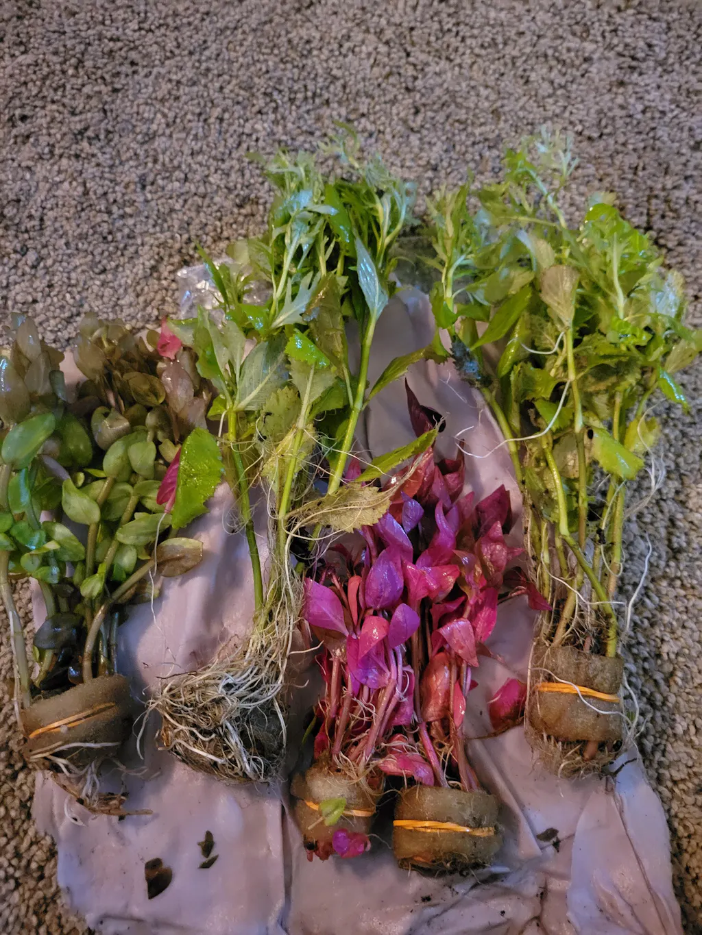 These are NICE Underwater grown plants with decent roots. The tops have the split leaf underwater growth, there are still some leaves with the above water more oval leaves lower.