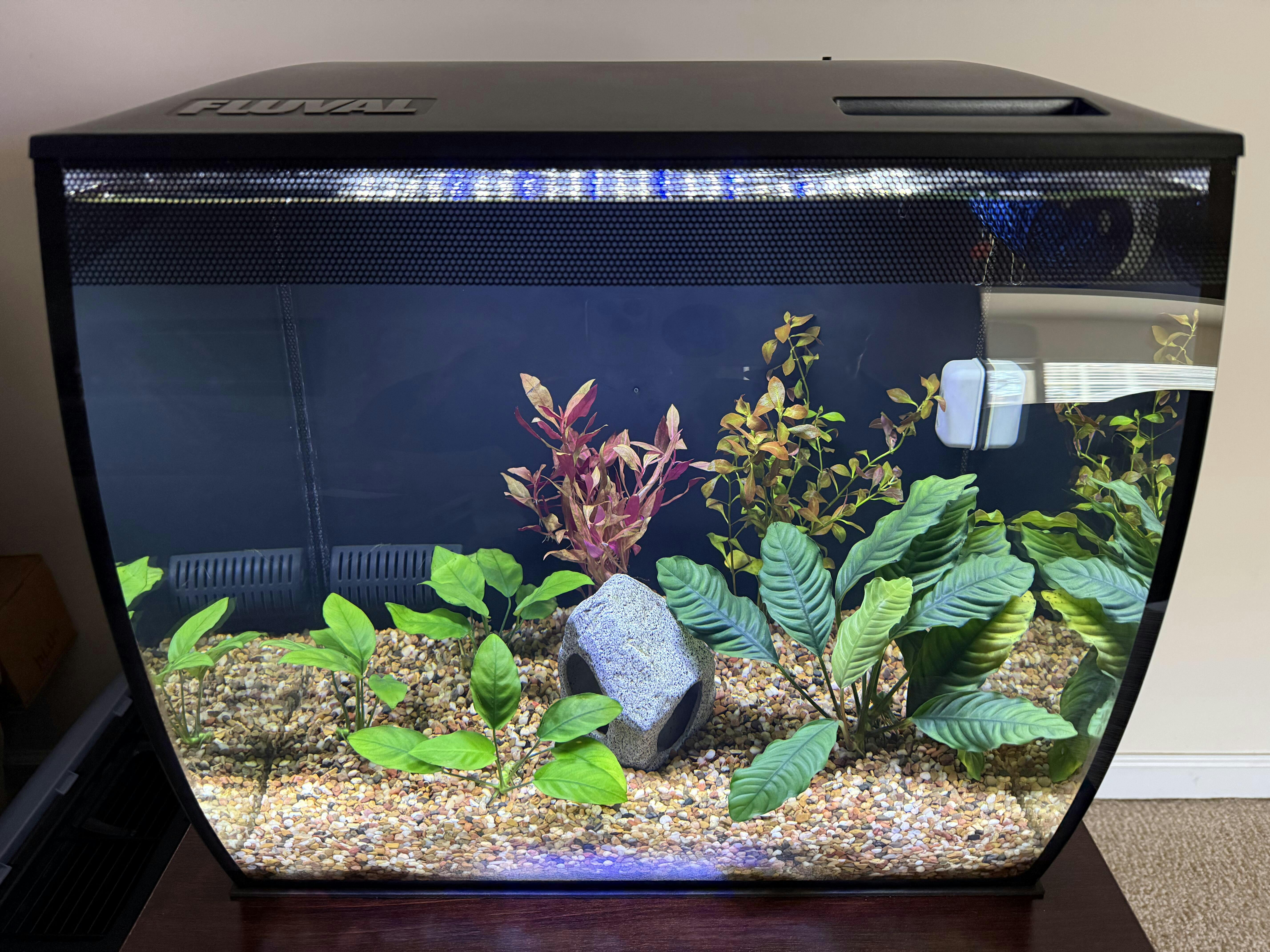 It’s main attraction for me is its flexibility to a variety of water types, substrates and lighting. I have had it under bright lights (250 watts on 125g) Ludwigia takes a little while to get adjusted to your tank and might even loose all of its leaves, but it will come back. I have seen it come back from only a few leaves to be a thriving plant. The Ludwigia you are getting has been individually planted down into dirt and may or may not have rooted yet, but it is a much healthier plant because of this.